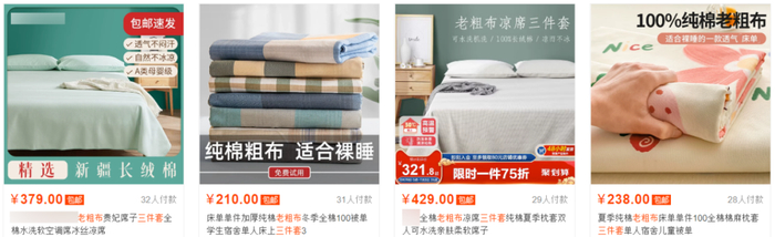 现在市面上同等材质工艺的老粗布三件套,基本都要200-400左右。