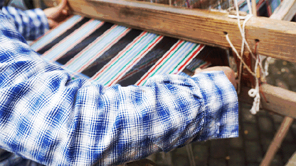 这种双股并织的古法工艺使得织出的布平整、密实、断头少,更经久耐用。