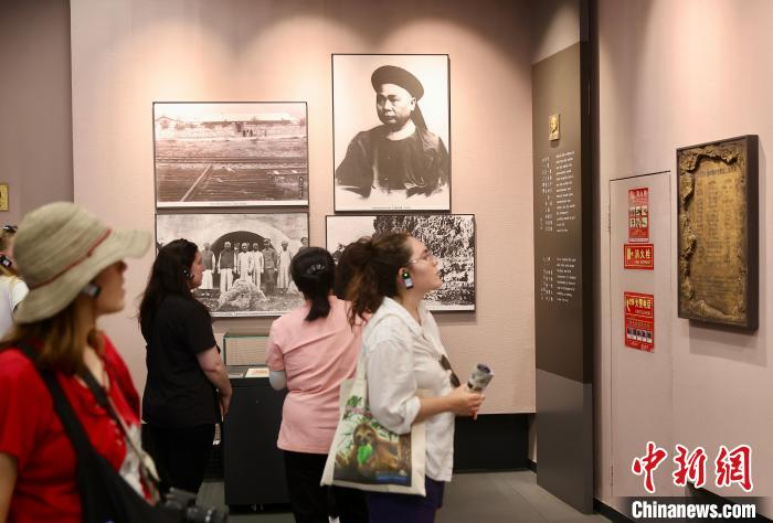 6月6日,“未来之桥”中美青年交流计划之中国中铁基建智能化建造交流活动在北京举行,图为美国青年参观詹天佑纪念馆。 中新社记者 易海菲 摄