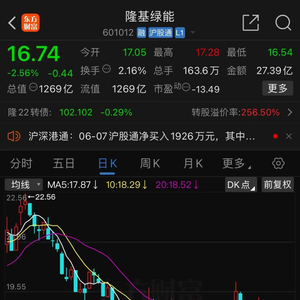 股价方面,隆基绿能近期持续承压,已创下近四年新低,6月6日,下跌6.02%,6月7日,下跌2.56%,报16.74元/股,总市值1268.6亿元。