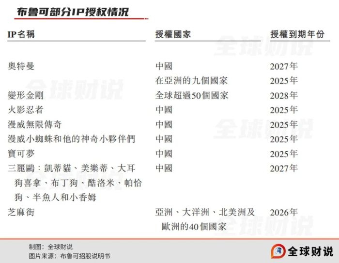 招股书显示,于2023年及截至2024年3月31日止的三个月,基于奥特曼IP的产品占公司大部分收入。而布鲁可的奥特曼IP在中国的授权到期年份为2025年,在亚洲其他9个国家到期年份为2027年,火影忍者、漫威无限传奇、宝可梦等IP到期年份为2025年。奥特曼IP到期后若无法重续,布鲁可能否维持高增速仍存疑。