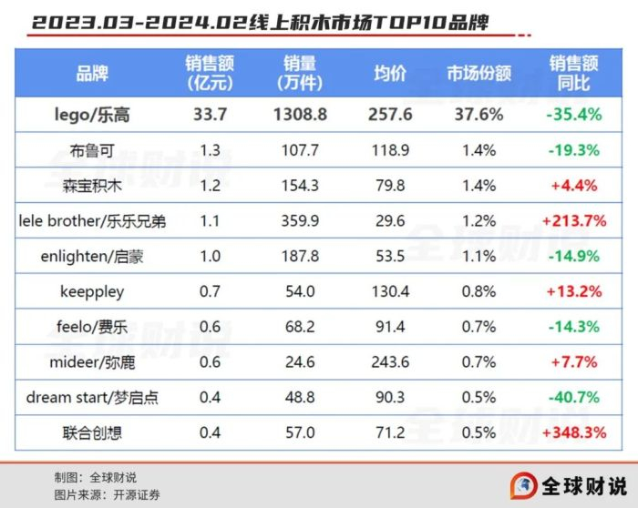 国内市场竞争同样越发激烈,2023年,中国拼搭角色类玩具市场中,布鲁可、万代、乐高的市场份额分别为30.3%、20.0%、14.8%。其后还有森宝积木、keeppley等国产品牌的追逐。