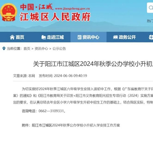 方案公布!江城区2024年秋季公办学校小升初入学安排
