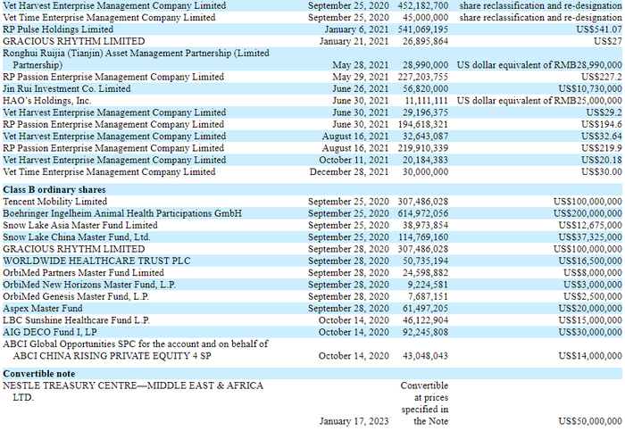 招股书显示,其他投资者还包括腾讯、勃林格殷格翰、雪湖资本、奥博资本、Gracious Rhythm、Aspex Master Fund、雀巢等。