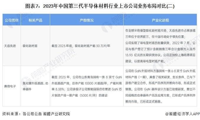 2023年以来,第三代半导体材料行业代表性企业的投资动向主要为产品研发、产能扩建项目等。企业具体最新投资动向如下: