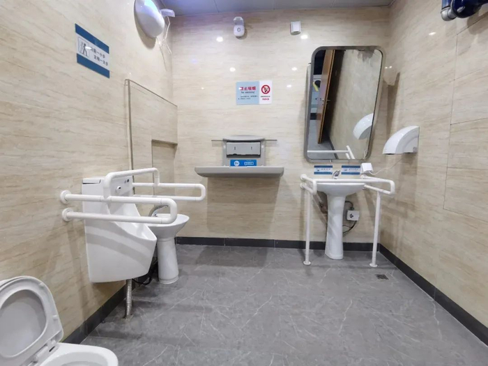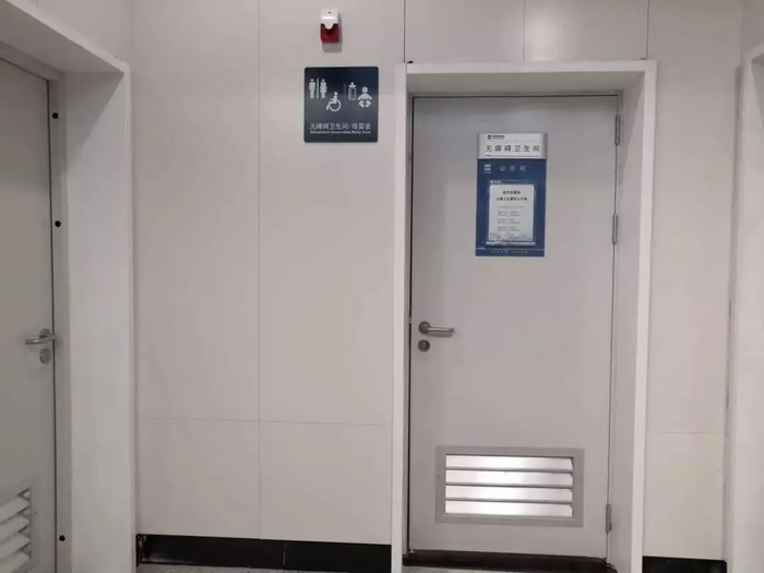 西安地铁各车站配备有独立的无障碍卫生间/母婴室,室内设有适合残疾人使用的马桶和洗手台,也有宝爸宝妈们关注的尿布台。在无障碍卫生间还安装有紧急求助按钮,如果有紧急情况,乘客可按下求助按钮,地铁工作人员也会及时赶到,并给予帮助。