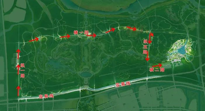 路线二:通过纵一路、横一路、纵五路和横二路,也可进入郊野公园。