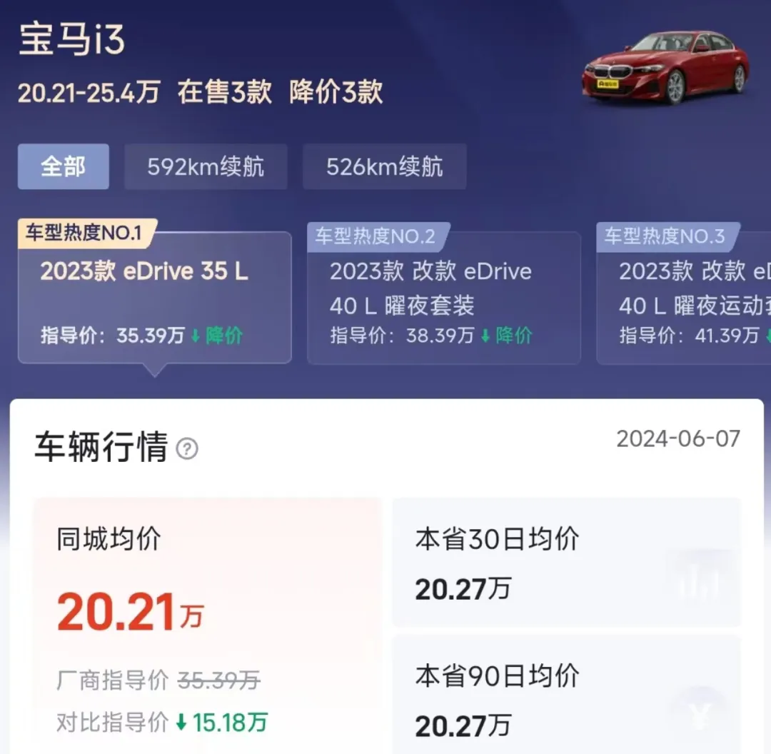 官方报价35.39万元的宝马纯电轿车i3,现裸车价最低的已到17万元,提车开回家的价格已经压缩至20万元区间以内。这样的降价幅度,一时间引发市场热议。