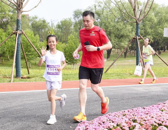 活动中,不少家长带着孩子参与亲子组的比赛。一位9岁的小跑者兴奋地表示,是妈妈带他来参加活动的,他们一家人都热爱运动,并希望通过参与这样的活动展现青春与活力。