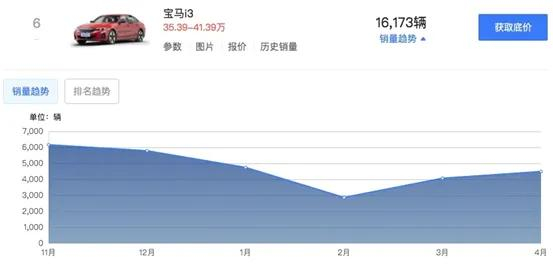 零售数据显示,今年1-4月,宝马i3累计销量为16173辆,月均销量不足5000辆。