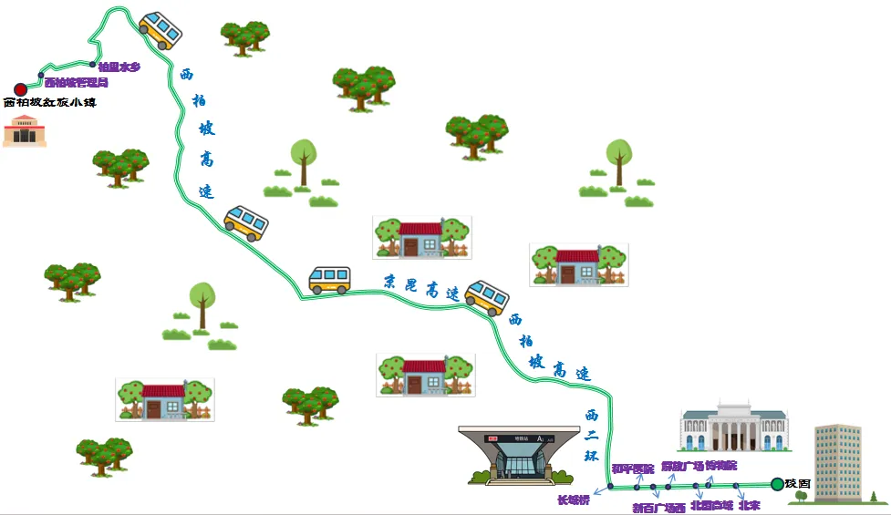 2. 路径:由谈固途经中山路、西二环、西柏坡高速、西柏坡公路至西柏坡红旅小镇。