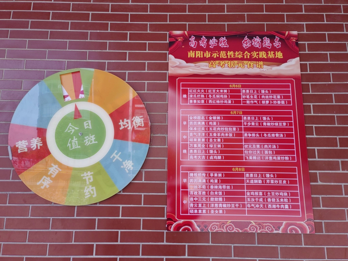 高考牵动着千万家庭的心,为切实保障高三学子饮食安全,以最好的精神状态迎接高考。实践基地严格履行食品安全主体责任,严格执行《餐饮服务食品操作规范》,保持后厨干净卫生,规范原料进货查验、菜单严格审查、餐食加工制作、餐具清洗消毒、食品留样等行为。同时为保证考生良好的复习状态,为考生精心制定出均衡、全面、适量的“状元食谱”,别具匠心的菜名饱含着实践基地对高三学子的祝福与期望!