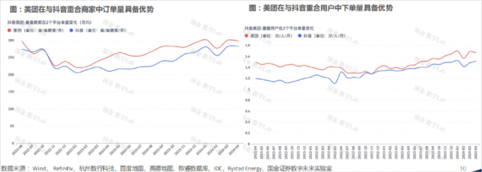 可以看到,在美团去年3月开始加大补贴、推出特价团购等措施后,商家在美团上的单量增速明显快于抖音。