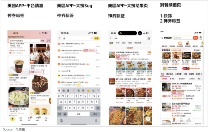 据近期流出的BD海报,美团在APP首页、搜索等位置,给神会员商家留出了4个核心展示位,明显流量位倾斜。