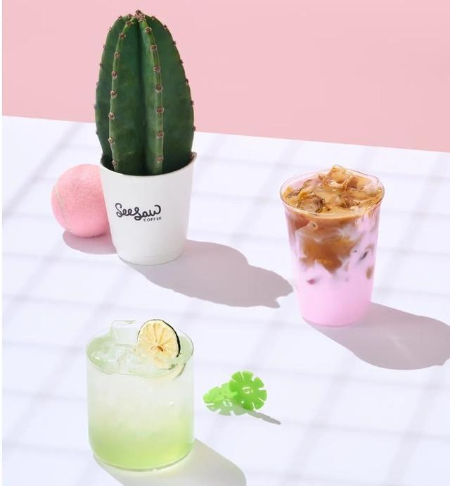 与品牌方合作的仙人掌果汁(左下)和仙人掌咖啡(右上)