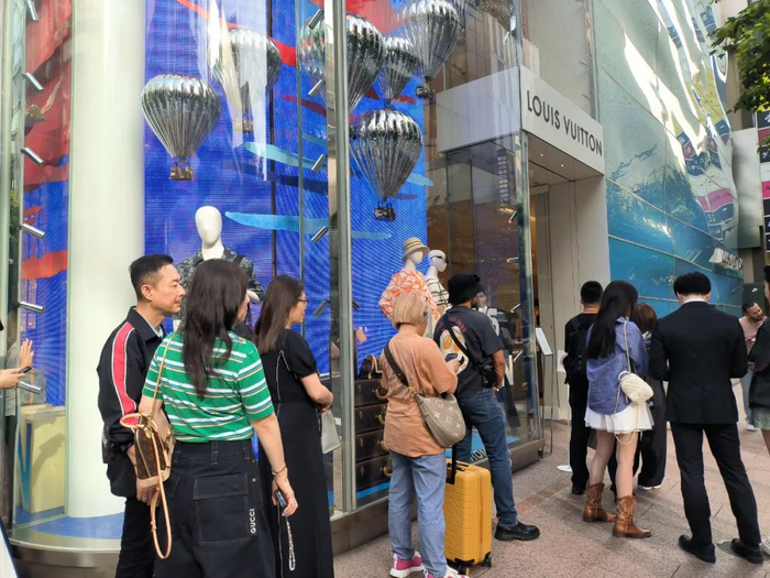 “排了一个小时的队了,还没轮到我进店。”在日本东京银座附近的LV店门口,来自中国湖北武汉的程女士对证券时报记者表示,这家店上午11点才开门营业,她已经提前至10点半来到,但彼时店门口已经排起了长队。