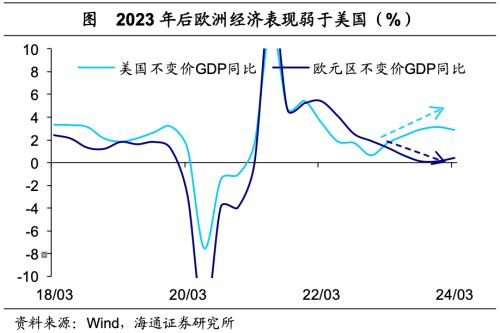 因此,在欧元区通胀压力相对较小,经济修复亟需降息呵护,而美国并不急于降息的情况下,欧央行有动力领先于美联储降息。