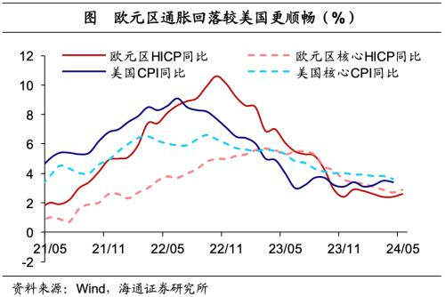 另一方面,美国经济在短期内仍维持一定韧性,劳动力市场的稳定使得美联储有更多时间观测通胀回落进展,美联储降息或仍需耐心等待。欧央行若在美联储降息前较为频繁地降息或加大其汇率贬值压力,提升进口价格,从而进一步推升其通胀上行风险。