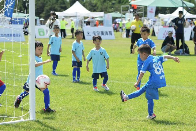 在被划分为40片35米×15米的小型五人制足球场上,近千名6岁组的孩子们率先“撒欢”,7岁组的活动则安排在下午进行。