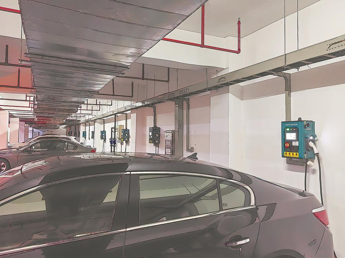 在厦门禧瑞风华一期小区地下车库,当地供电部门加装的集中式表箱可满足充电桩的用电需求。