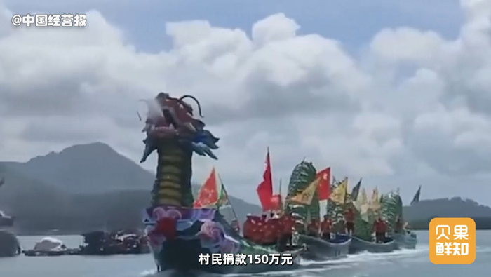 不过鸭老师记得,去年海南万宁有两个村,村民捐款150万元,打造了两艘百米龙船,会发光会喷水,十分炫酷,不过就是不能自己划。