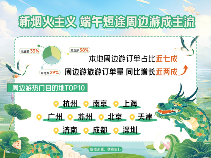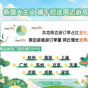 这个端午年轻人撑起大半边天,携程报告显示,端午三天假期,主要出游人群集中在90后、00后及80后,分别占比为37%、25%和25%。00后增长最为显著,出游人次同比去年增长近30%。自驾客群更加年轻化,携程租车数据显示,端午假期90后租车订单占比40%,00后订单同比增长150%。