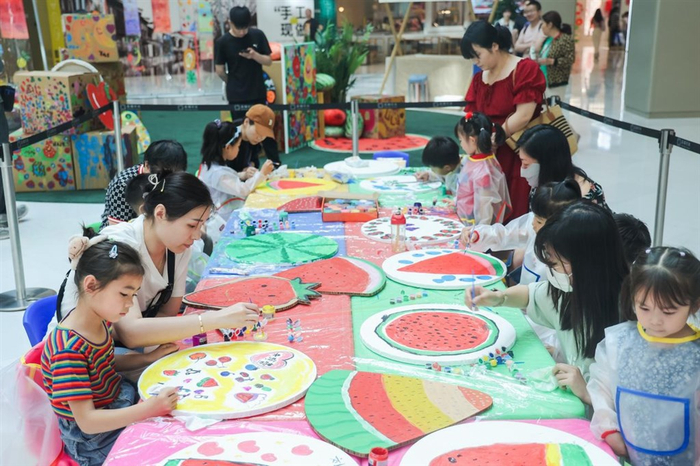 儿童作为非遗文化传承的“新动力”,是非遗文化宣传中不可或缺的重要部分。晶耀前滩小掌柜创业跳蚤市集为儿童培养社交能力与分享精神提供了舞台。六一期间,KIDEAS还以“夏日狂想”为主题,结合瓜果蔬菜艺术化创作,落地为展。深入直观感受助农活动,增强孩子们对农业与自然的关注和兴趣,有效推动我国传统文化的“活态”展示与传承,焕发新的生机与活力。