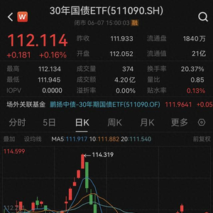 今年以来,中国央行自身或通过媒体频繁对长端利率表态,导致以30年国债收益率为主要标的的长债逆转了持续下行的态势,市场投机炒作情绪迅速降温。30年国债ETF在3月时一度冲上115以上,此后不断下跌,如今在110~112附近区间震荡,交易活跃度也大幅收缩。截至6月7日收盘,30年国债ETF(511090)报112.114。