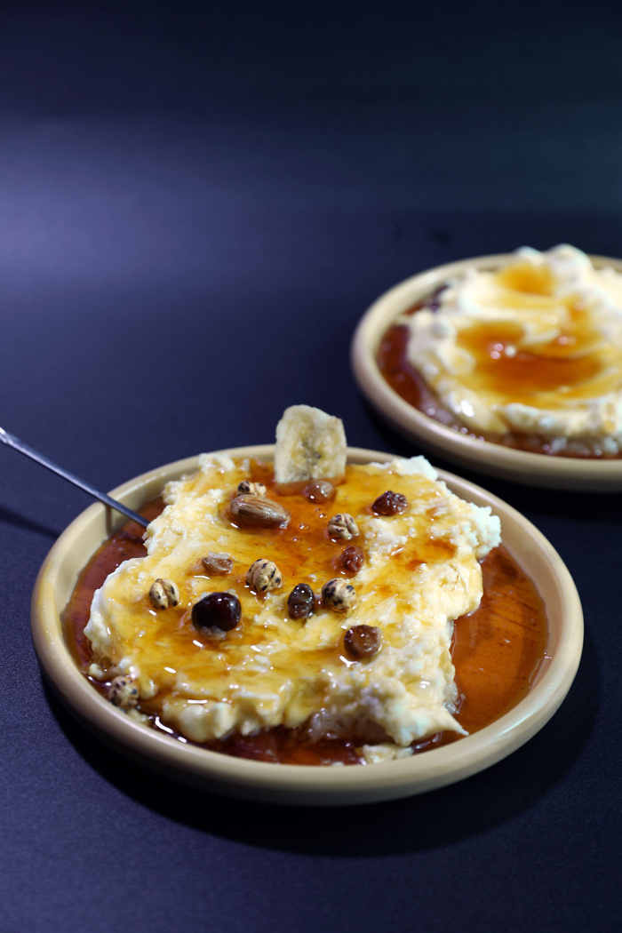 在北京一家餐厅,工作人员为顾客送上酸奶粽子。