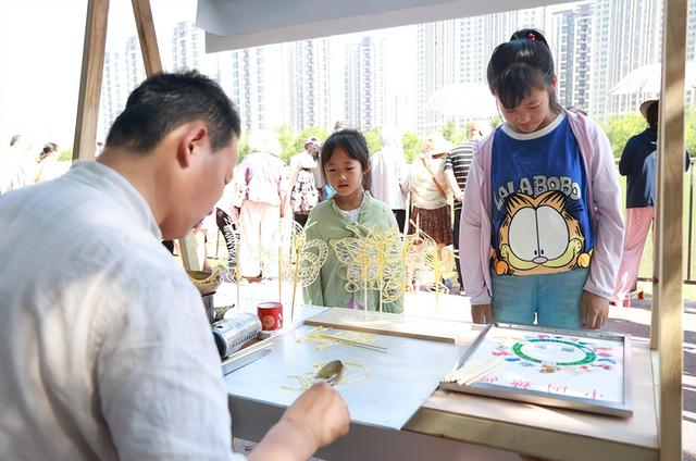 贾鲁河上龙舟竞渡,岸边体育市集百花齐放,除了有跳绳、毽球等传统体育游戏互动外,还有糖画、投壶等非遗项目展示,以及文旅产品推介,不少市民通过亲身参与享受运动的欢乐和传统文化的魅力。