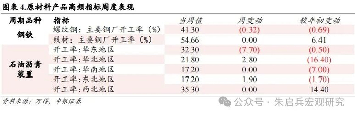 上游周期品方面,本周各品种钢材开工率环比上周持平或下降,螺纹钢、线材开工率分别变动-0.32和0.00个百分点;建材社会库存延续下滑,较前一周变动-7.47万吨。6月5日当周,各地区石油沥青装置开工率表现以上升为主,仅华东地区开工率均较前一周有所下降。