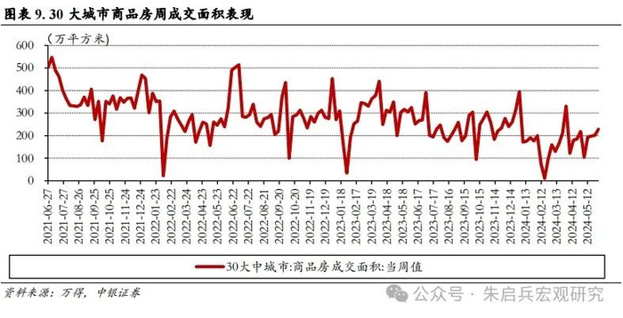 商品房成交回暖趋势延续。6月2日当周,30大城市商品房成交面积回暖,单周成交面积环比变动27.09万平方米。30大中城市商品房成交面积环比连续四周上行,仍需关注5月中旬稳地产政策发布后,地产销售相关数据是否出现持续向好。