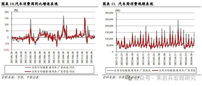 汽车方面,5月31日当周,国内乘用车批发、零售销量单周同比增速分别为11.00%和6.00%。维持看好在 “以旧换新”等政策支持下,年内汽车销量或有较好表现。