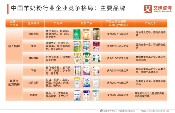 中国羊奶粉行业企业竞争格局:主要品牌