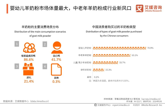 婴幼儿羊奶粉市场体量最大,中老年羊奶粉成行业新风口