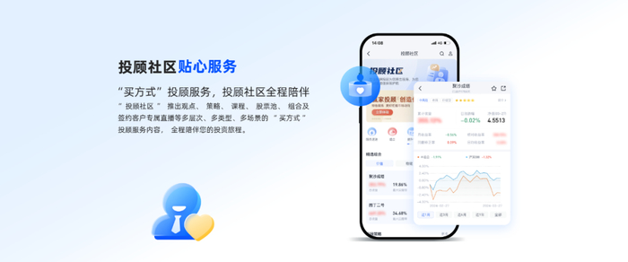 亮点二:全新投顾社区申财有道APP推出了全新的投顾社区,整合公司精品投顾资源,在线带来投顾观点、策略、课程、股票池、组合及签约客户专属直播等多层次、多类型、多场景的“买方式”服务内容。