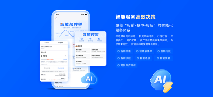 正式发布申财有道APP是申万宏源在“数字力”建设方面的重要里程碑。以数字化手段洞察客户需求、智能化手段提升客户体验,满足客户对高品质综合金融服务的需求,是申万宏源致力于实现普惠金融、践行金融工作“人民性”的体现。2022年,申万宏源证券携手恒生旗下子公司鲸腾网络,正式启动“申财有道”投资者终端建设项目,APP继承了申万宏源综合金融服务的优势、融合前沿金融科技技术,从五大方面为投资者带来全新财富管理体验:亮点一:智能化的服务体系申财有道APP依托云服务、AI算法等,为投资者打造了一套覆盖“投前-投中-投后”的智能化服务体系,并打造智能资讯,为投资者展示最需要的内容。