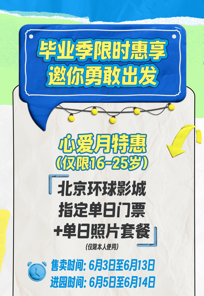 即日起至6月30日,每日仅限入园一次(项目不含:摩天轮·飞越系列影片·酷跑卡丁车·有奖竞技类)(6月17日、24日闭园不可使用)