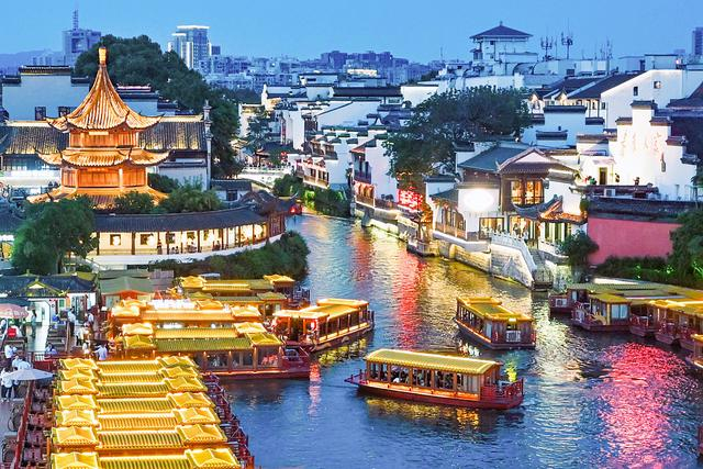 2024年6月10日,南京,游客们乘坐画舫游览秦淮河。