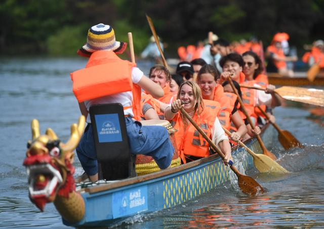 2024年6月9日,来自俄罗斯、奥地利、荷兰等10余个国家和地区的龙舟爱好者,在浙江杭州西溪湿地进行龙舟训练,感受中国端午习俗。