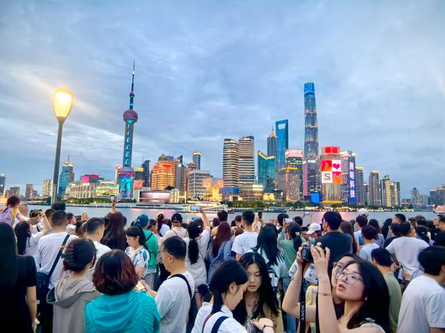 2024年6月10日晚,当天是端午节小长假最后一天,夜游上海外滩的各地游客让黄浦江畔、南京路等地人头攒动。