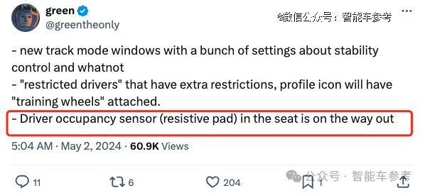 专注跟踪特斯拉动态的黑客“绿神”green,近日在社交平台爆料,他通过逆编译破解了特斯拉的软件更新数据,指出特斯拉将移除座位占用传感器。