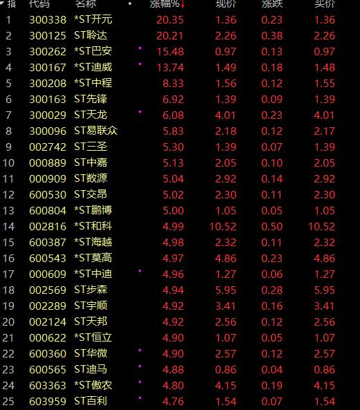 疯狂一幕!ST板块,约20股涨停,超30股封死跌停!
