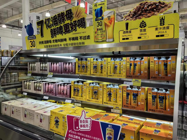 “我们这个精酿鲜啤主打一个‘鲜’,无菌冷罐、全程冷链,很多客人夏天会不断回购。”记者在现场看到,这款以“鲜”为卖点的精酿啤酒有多个口味,1升装会员售价22元,有满减活动的时候叠加券价格会更低一些。不过要提醒的是,夏天囤啤酒也建议“量力而行”,毕竟天气凉快之后大家对冰镇啤酒的需求也会相应降低。
