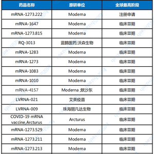 表1 NDA及临床3期阶段mRNA疫苗和药物