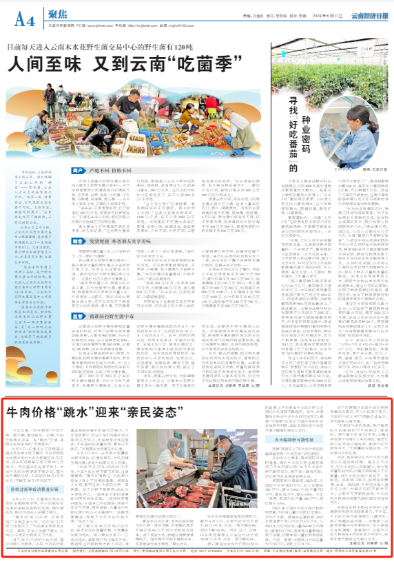 据云南省农业农村厅网站发布的数据,5月份我省牛羊肉价格与全国均价均呈现下跌趋势。此外,中国畜牧业协会牛业分会报告也显示,根据“牛周期”以及结合国内经济社会总体形势判断,2024年国内肉牛市场行情大概率仍将低位运行。