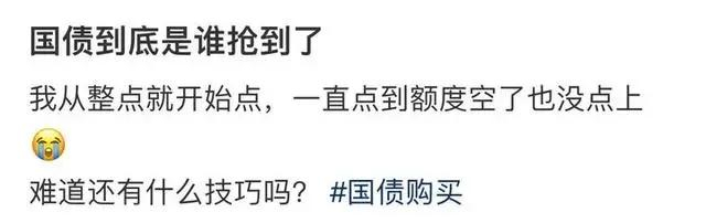 据中国基金报,记者注意到,此轮国债的发售时间选择在了端午节,多家银行网点都处于休息状态,不少热衷买国债的老年人,因为不会使用APP,而无法买到。但是熟悉APP的年轻朋友也在社交平台上普遍反映“买不到”。