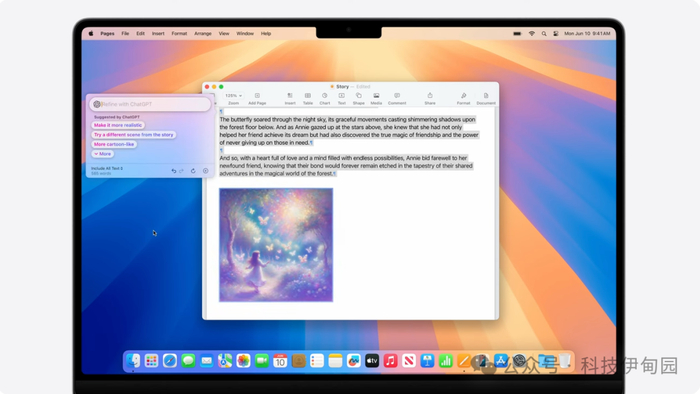 Siri 会确认是否可与 ChatGPT 分享照片,然后为你带回一些点子,整个过程一气呵成。除了照片,你也可以询问与文档、演示文稿或 PDF 相关的问题。我们还借编写功能,将 ChatGPT 融入了 全系统适用的书写工具中。无论想写什么题材,都可用 ChatGPT 来创作内容。