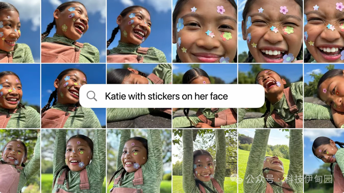 此外,搜索照片和视频也都更方便。因为现在可以使用自然语言词组了,这样就能搜索极为具体的目标。比如“Maya 穿着扎染衬衫在玩滑板” 或“Katie 脸上贴着贴纸”。视频中的搜索功能也更强大,可以找到一段视频当中的特定时刻以便你直接跳转到相关片段,比如“Maria 在草坪上侧手翻”的画面。
