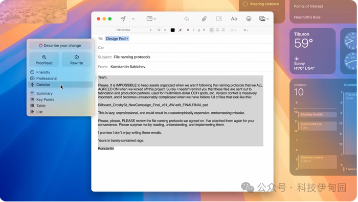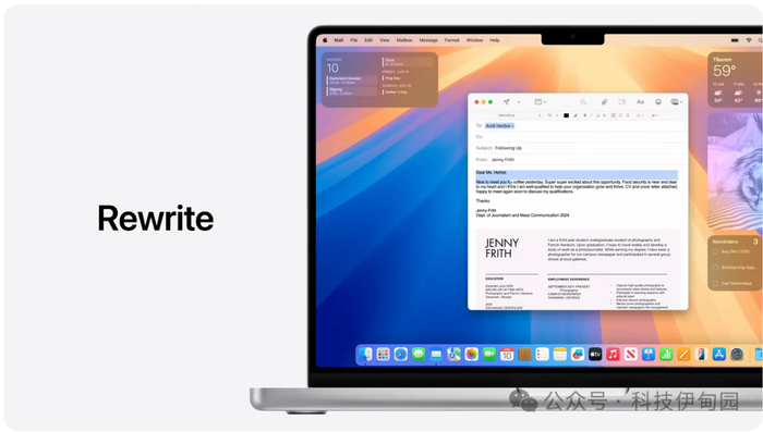Apple Intelligence 带来的新方式能优化你的写作体验,很适合用来整理你草草记下的课堂笔记。让你在 Wordpress 中的博客读起来行云流水,或是让邮件的表述句句到位。让我们通过邮件 app 来看看全系统适用的书写工具如何帮你更高效地沟通重写功能可提供你写过的不同版本,以便你选出最满意的一版。